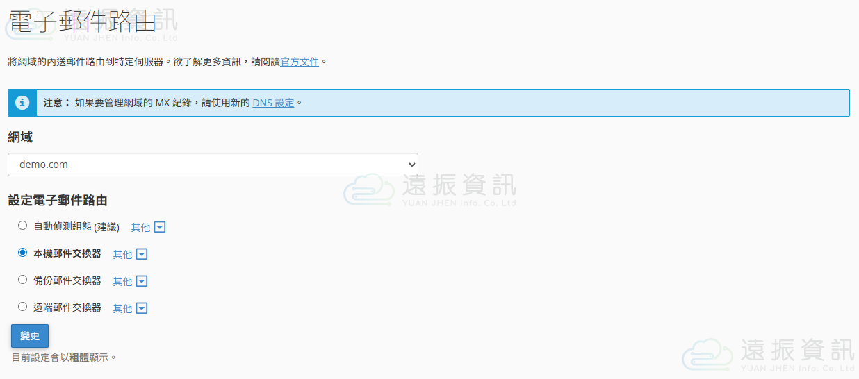 此處可已設定對應網域的電子郵件路由設定,詳細內容可以參考如下: