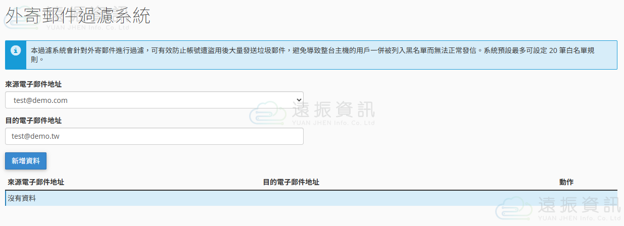如果您希望主機內其中的電子郵件帳號寄給特定使用者不被系統阻攔,