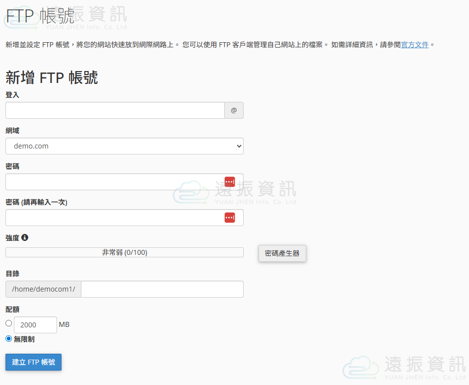 此處為 cPanel 系統預設建立的 FTP 帳號。