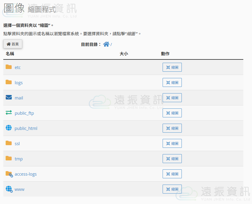可以以點選目錄名稱進入下一層,若要針對此目錄進行操作可以直接點選縮圖