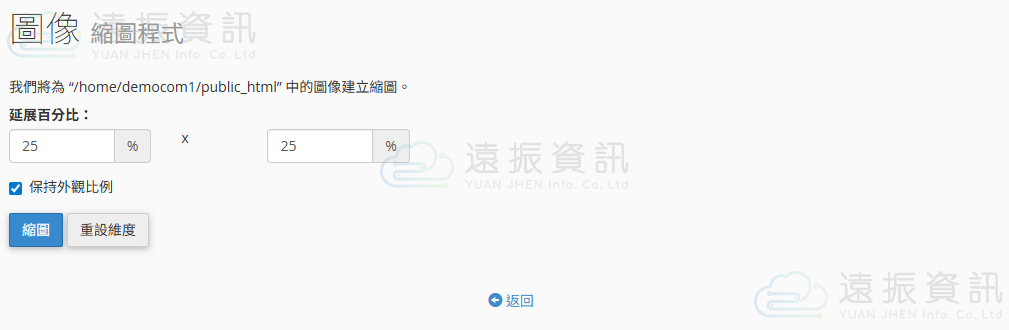可以設定圖片的長度和高度或圖片的縮放比例,也可以選擇是否維持圖片比例或保留舊的圖檔。