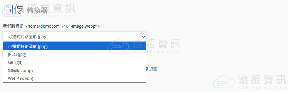 可以通過此功能針對單張圖檔進行格式轉換,例如 JPEG、PNG 或 GIF。