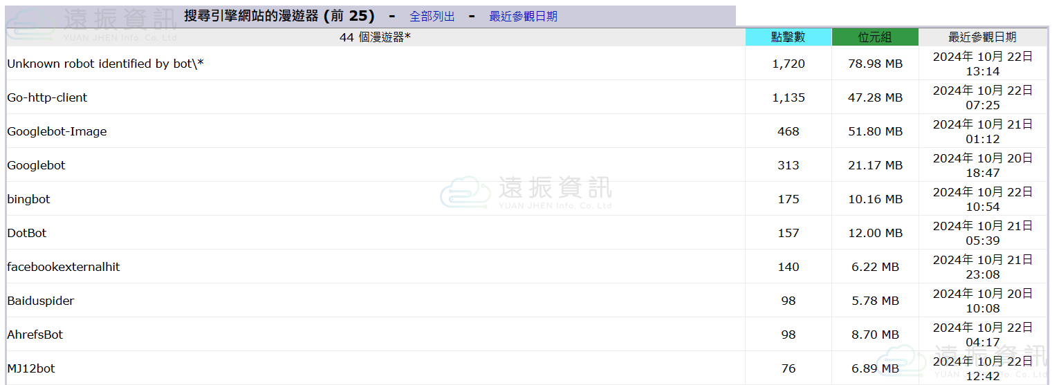 可在此處查看瀏覽器的流量,以及網路爬蟲相關的流量