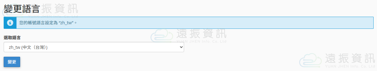 此處可調整您的 cPanel 帳號語言偏好設定。
