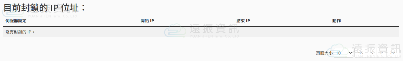 在此處可以查看已被封鎖的 IP 列表,並且可以選擇解除封鎖。