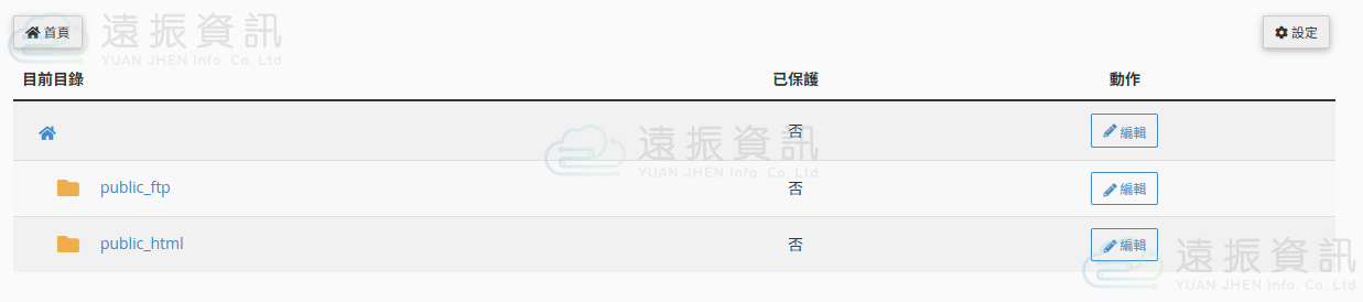 可針對當前目錄或點選資料夾名稱進入下一層,找到需要設定的資料夾,點選 "編輯" 進入密碼保護的設定頁面。