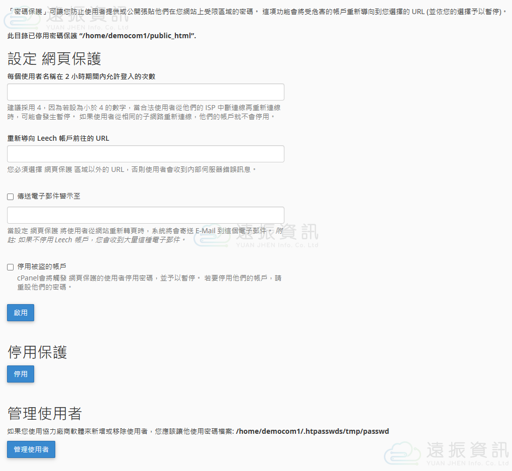 在密碼保護的設定頁面中,將顯示目前的資料夾是否有被設定保護,可以根據您的需求進行調整。